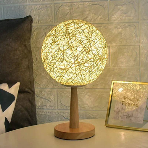 🏠 ديكور شيك وعصري، تصميمها كرات خيط الخيش  وقاعدة خشبية، تحسسك بالدفا والرومانسية.