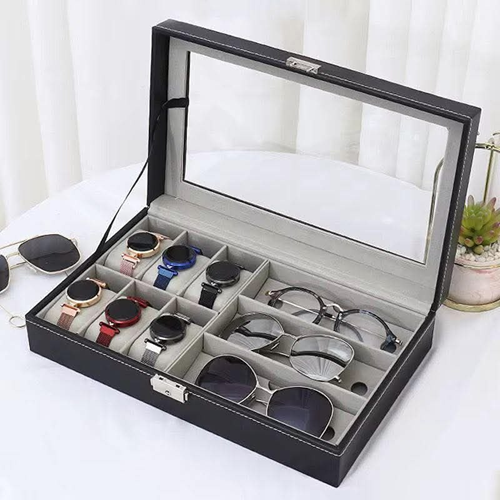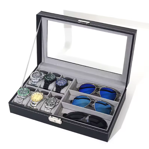 دلوقتي تقدر تحفظ كل ساعاتك ونظاراتك في مكان واحد بشكل أنيق ومرتب 👌البوكس معمول من جلد صناعي فخم، ومبطن من جوه بمخمل ناعم يحافظ على كل حاجة من الخدوش أو التراب 💎