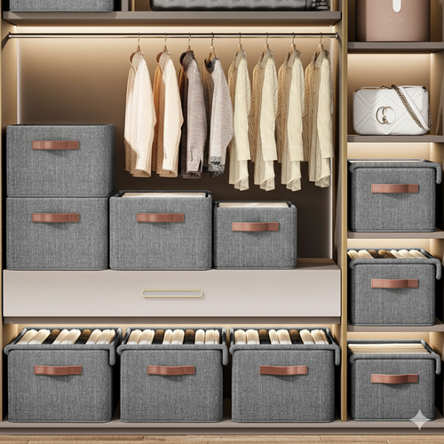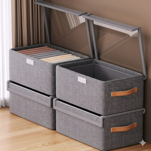 • بوكس تنظيم عملي يساعدك ترتبي الملابس والأغراض في الدولاب بكل سهولة.