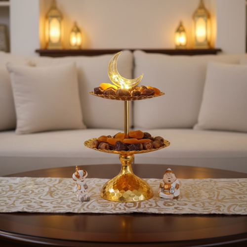 جبنالك شيالة جولد – أشكال هلال ونجمة ✨جهزي بيتك لرمضان بأناقة مع الشيالة الجولد 2 دور! 🕌⭐