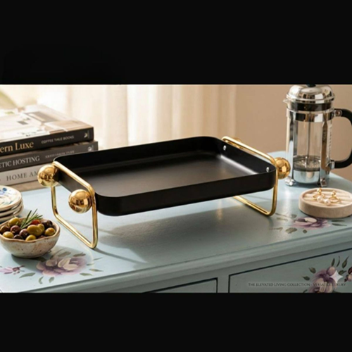 لو بتحبي التقديم الأنيق واللمسة المودرن على سفرتك، صينية التقديم باللون الأسود مع الحوامل المعدن الجولد هتكون اختيار مثالي ليكي 😍