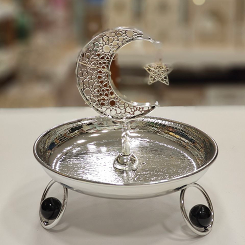 جبنالك طبق تقديم فضي شكل هلال ✨خلي ضيافتك مختلفة وأنيقة مع طبق التقديم الفضي على شكل هلال 🌙