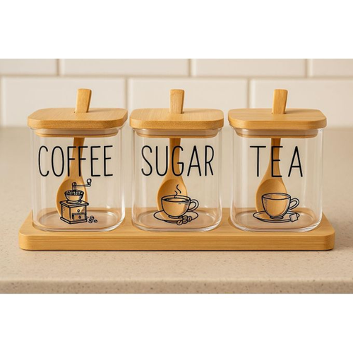 جبنالك طقم برطمانات الشاي والقهوة والسكر الزجاج 4×1 🛒❤️