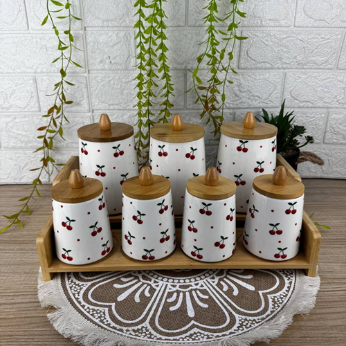 • Image of طقم برطمانات 7 قطع بستاند خشبي