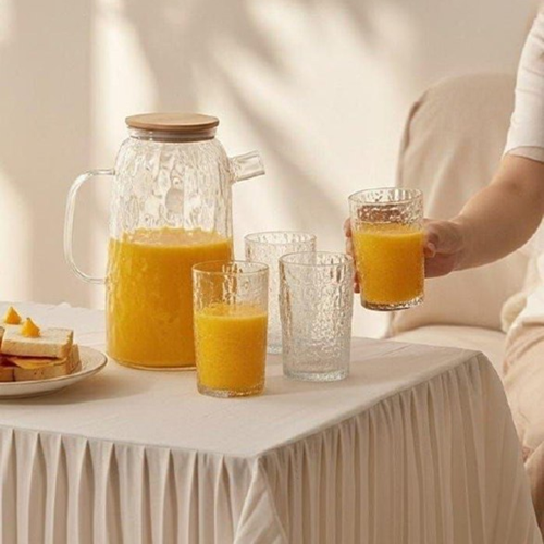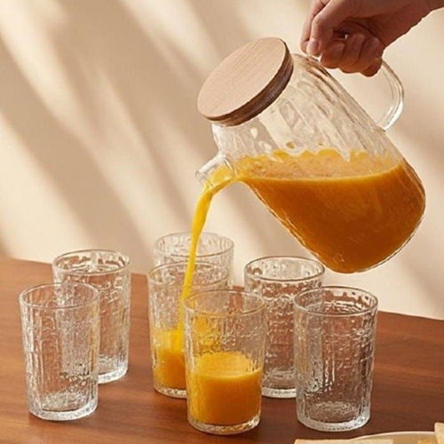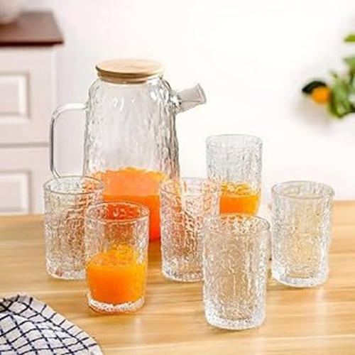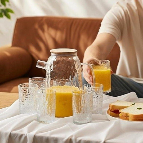 جبنالك طقم دورق زجاج + 6 كوب 👌عزومتك تبقى آخر شياكة مع طقم دورق زجاج فاخر مع 6 كوب عالي الجودة!