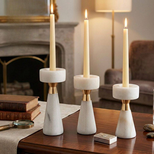 💫 الطقم مكوّن من 3 شمعدانات بتصميم شيك من الرخام يناسب الديكورات المودرن والكلاسيك.