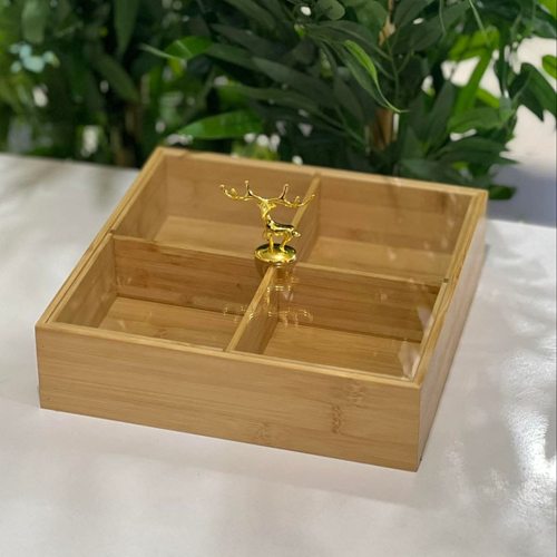 لو بتحبي التقديم المرتب والشكل المميز على السفرة، علبة التسالي مقسمة 4 خانات بمقبض الغزالة هتكون إضافة جميلة جدًا لبيتك ✨
