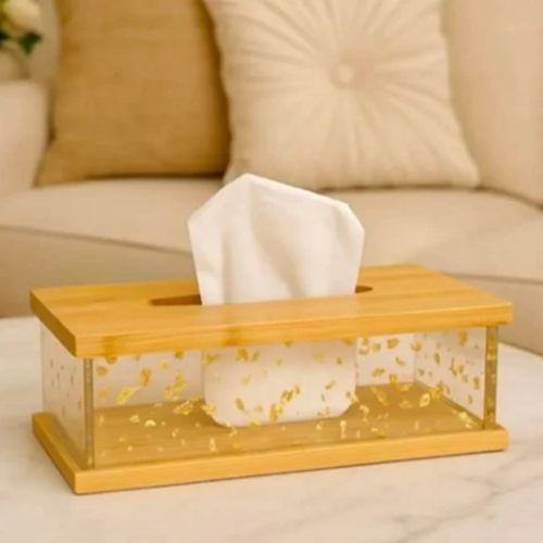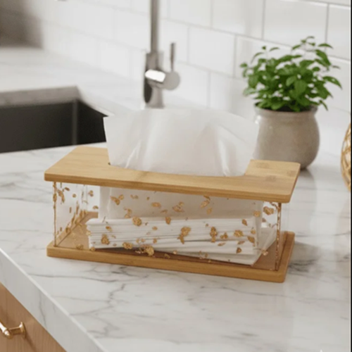 جبنالك علبة مناديل أكريليك بغطاء خشب بامبو ✨مستوردة وعالية الجودة هتدي لمسة فخمة لأي مكان.