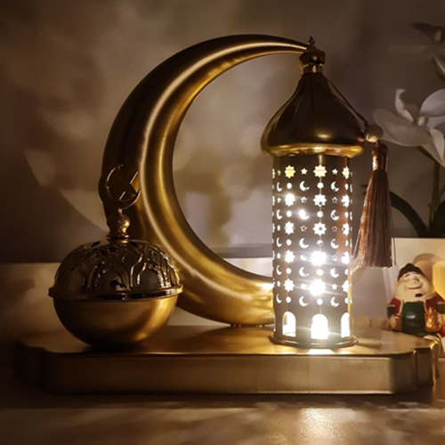 جبنالك ستاند هلال وفانوس ومبخرة – ديكور 3×1 مفيش أشيك من كده ✨