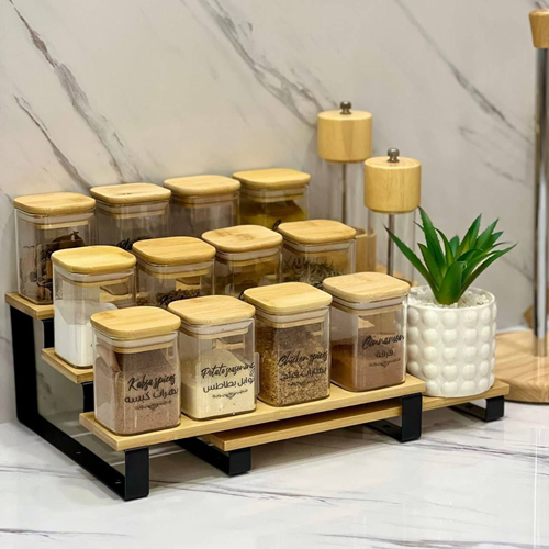 لو عايزة مطبخك يبقى مرتب وشكله شيك، سلم التوابل معدن × خشب بامبو هيكون الحل المثالي 👌