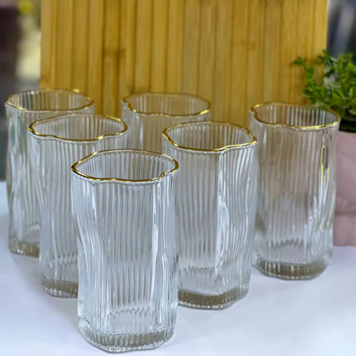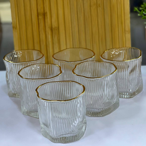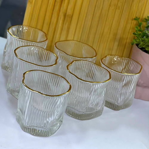 طقم أكواب بإطار جولد 6 قطع
