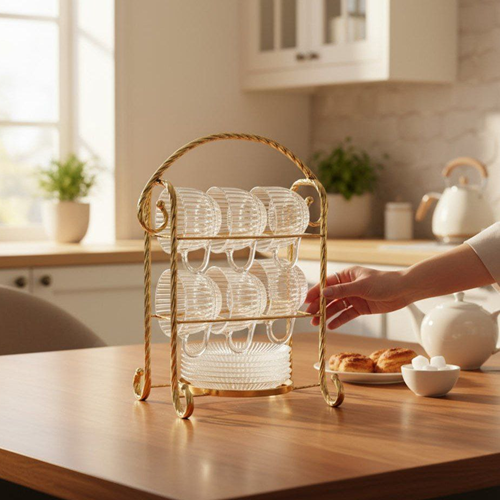 ✅ مقاس الستاند: 37*23 سم – مساحة كبيرة تنسّق الأكواب عليه بسهولة