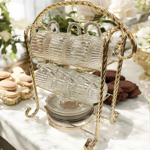 جبنالك طقم أكواب شاي فاخر مع بستاند معدن وكريستال ✨☕دلّعي ضيوفك وأنتِ بتقدمي لهم الشاي بأناقة مع طقم الأكواب ده: