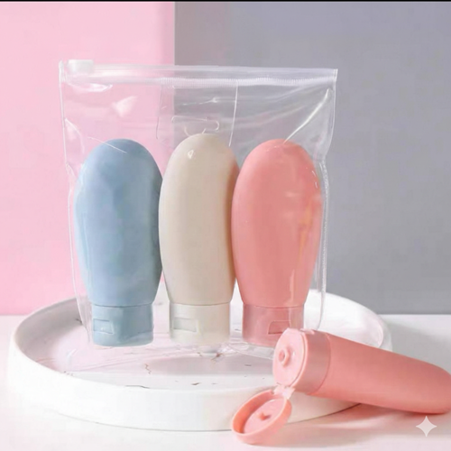 جبنالك عبوات سفر 3 قطع ✨حل عملي لكل خروجة أو سفرية من غير شيل هم ❤️ تنفع لحفظ الشامبو، الكريم، أو أي سوايل تانية👌🏻