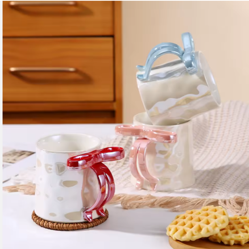 ▪️ مج شيك جدًا بلمسة مختلفة، اليد على شكل فيونكة تضيف أناقة وجمال.