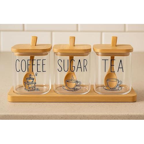 جبنالك طقم برطمانات الشاي والقهوة والسكر الزجاج 4×1 🛒❤️